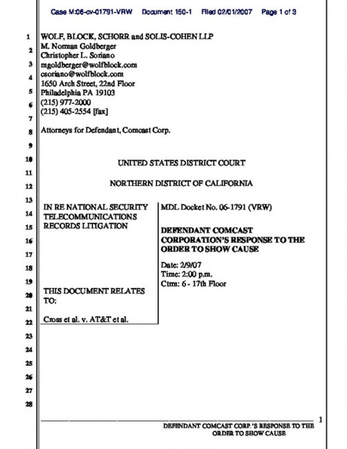 Document | February 1, 2007 Comcast response to order to show cause Read more about Comcast response to order to show cause