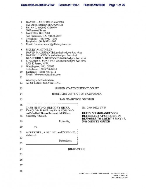 Document | September 28, 2007 AT&T's reply to EFF's memorandum on secret evidence and arguments Read more about AT&T's reply to EFF's memorandum on secret evidence and arguments