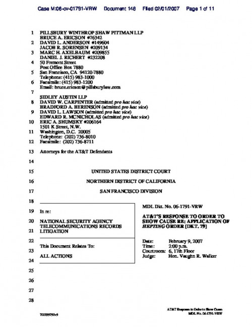 Document | July 31, 2006 AT&T brief on order to show cause Read more about AT&T brief on order to show cause