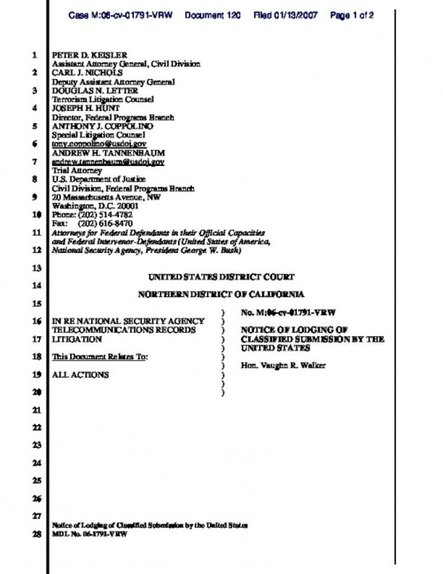 Document | January 13, 2007 Government notice of lodging of classified submission Read more about Government notice of lodging of classified submission