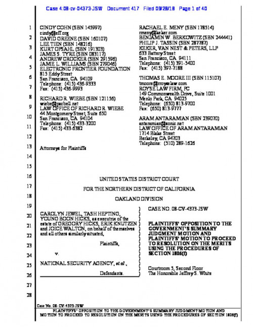 Plaintiffs' Opposition to the Government's Summary Judgment Motion and Plaintiffs' Motion to Proceed to Resolution on the Merits Using the Procedures of Section 1806(f)