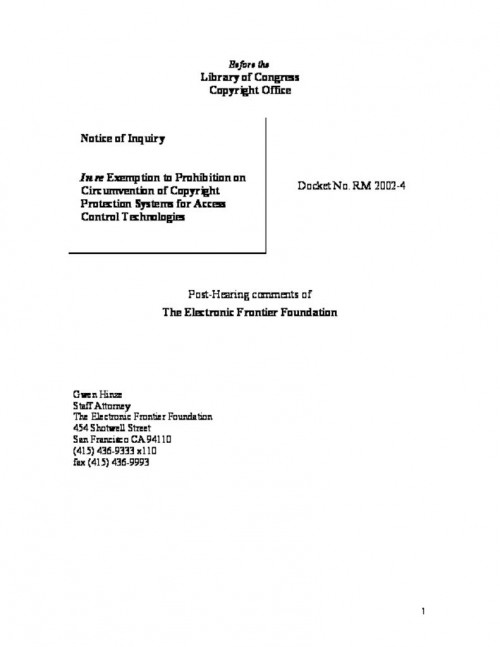 "Post-hearing comments, June 20 2003"