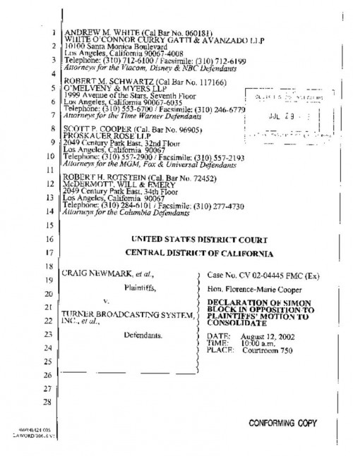 Document | July 29, 2002 Declaration of Rothken in Support of Motion to Consolidate Read more about Declaration of Rothken in Support of Motion to Consolidate