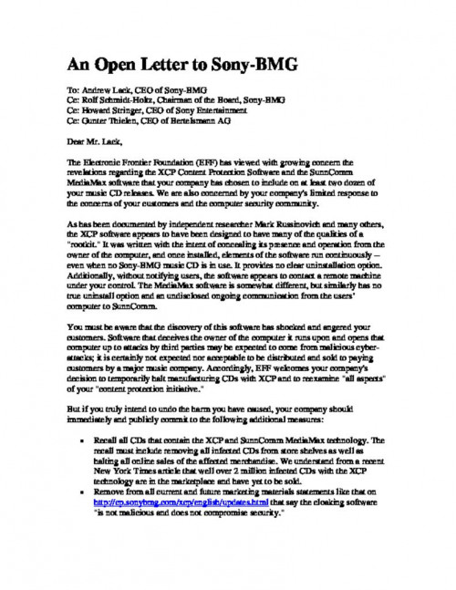 Document | September 18, 2006 Cohn Affidavit Exhibit 3 - Sony BMG Response Read more about Cohn Affidavit Exhibit 3 - Sony BMG Response
