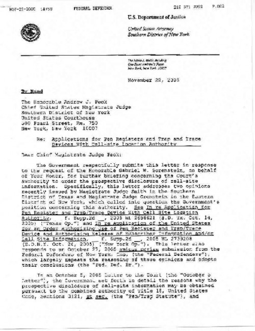 Document | October 5, 2005 Government Memorandum Arguing for Authorization to Track Cell Phone Read more about Government Memorandum Arguing for Authorization to Track Cell Phone