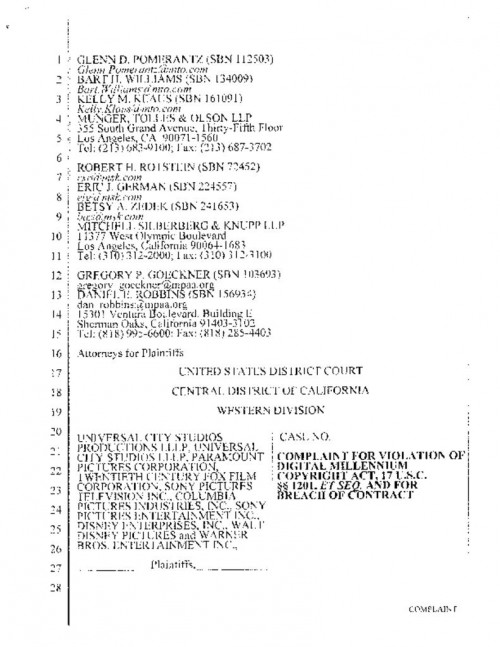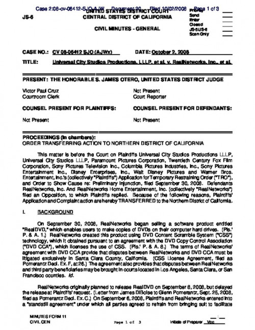 Document | September 30, 2008 Studios Complaint Against RealNetworks Read more about Studios Complaint Against RealNetworks