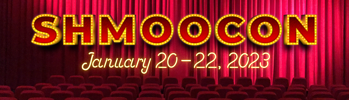 ShmooCon is an annual east coast hacker convention hell-bent on offering three days of an interesting atmosphere for demonstrating technology exploitation, inventive software and hardware solutions, and open discussions of critical infosec issues. The first day is a single track of speed talks called One Track Mind. The next two days bring three tracks: Build It, Belay It, and Bring It On.