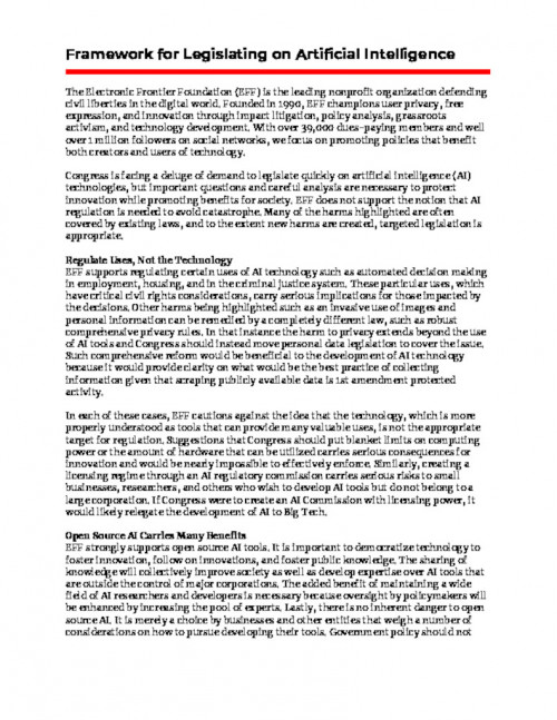 EFF is tracking these issues, and will intervene to ensure there are protections against the privacy, safety and due process problems that could be caused by poorly designed or deployed machine learning systems, while protecting the rights of innovators to build, experiment with and deploy awesome new forms of AI.