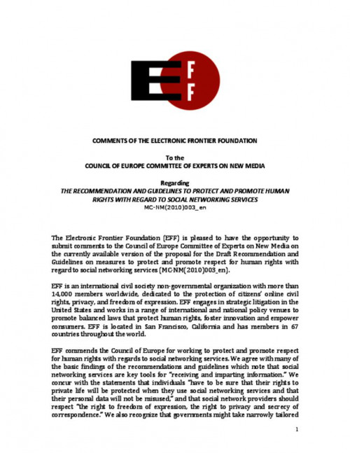 EFF has hundreds of donors and thousands of active supporters throughout Europe. We work with the many digital rights organizations across the continent and are members of EDRi, the international digital rights advocacy organization based in Brussels.