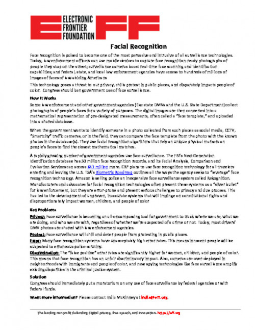 Government mandated biometric systems are invasive, costly, and damage the right to privacy and free expression. They violate the potential for anonymity, which is crucial for whistleblowers, investigators, journalists, and political dissidents.
