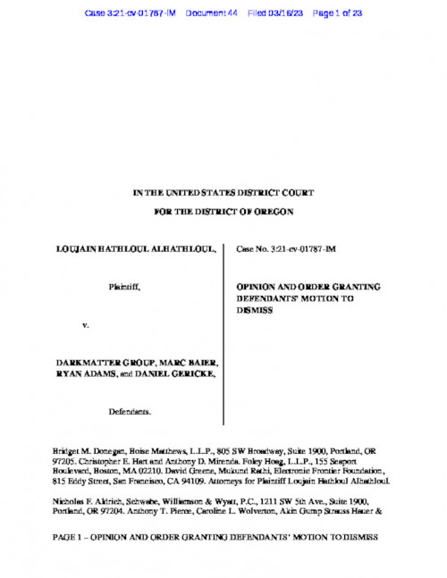 EFF is representing prominent Saudi human rights activist Loujain AlHathloul in a lawsuit against spying software maker DarkMatter Group and three of its former executives for illegally hacking her iPhone to secretly track her communications and whereabouts.