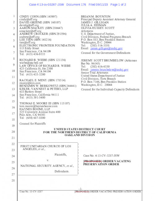 In July, 2013, EFF filed another lawsuit, First Unitarian v. NSA, based on the recently published FISA court order demanding Verizon turn over all customer phone records including who is talking to whom, when and for how long—to the NSA. This so-called “metadata,” especially when collected in bulk and aggregated, allows the government to track the associations of various political and religious organizations. The Director of National Intelligence has since confirmed that the collection of Verizon call records is part of a broader program.