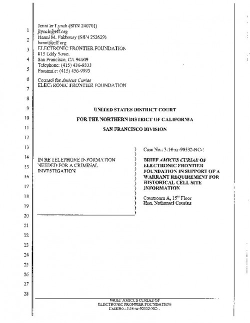 EFF filed an amicus brief in support of the Federal Defender's argument that the government needed to use a search warrant to obtain historical cell site data. Our amicus brief argues there is a growing societal recognition that it is reasonable to expect privacy in cell phone data that reveals a person's location, as reflected by a growing number of state courts and legislatures requiring law enforcement use a search warrant to obtain this sensitive information. Our amicus brief also notes the California constitution specifically treats telephone records as private.
