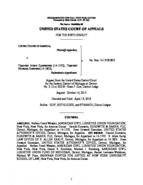 This week, the Sixth Circuit Court of Appeals held, in United States v. Carpenter, that we lack any privacy interest in the location information generated by our cell phones. The opinion shows a complete disregard for the sensitive and revealing nature of cell site location information...