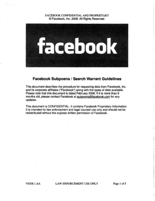 Document | January 20, 2011 Facebook 2008 Law Enforcement Guide Read more about Facebook 2008 Law Enforcement Guide
