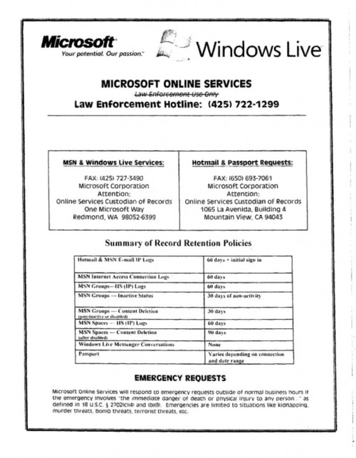 Document | January 20, 2011 MSN 2006 Law Enforcement Guide Read more about MSN 2006 Law Enforcement Guide
