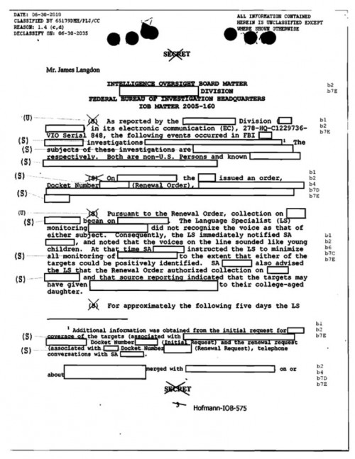 Document | March 30, 2011 IOB 2005-160 IOB Report documenting FBI monitoring of "young children" as a consequence of a "John Doe" wiretap.... Read more about IOB 2005-160