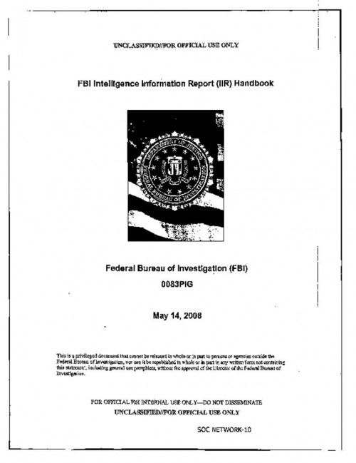 Document | October 12, 2010 FBI Intelligence Information Report Handbook FBI Intelligence Information Report Handbook which mentions using “covert accounts” to access protected information. Read more about FBI Intelligence Information Report Handbook