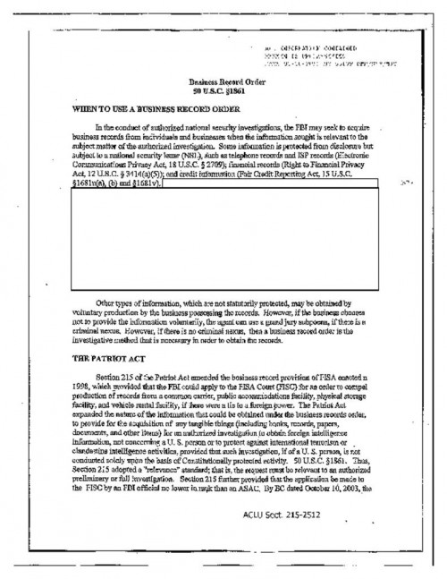 Document | July 30, 2012 Section 215 - FBI Second Release Read more about Section 215 - FBI Second Release