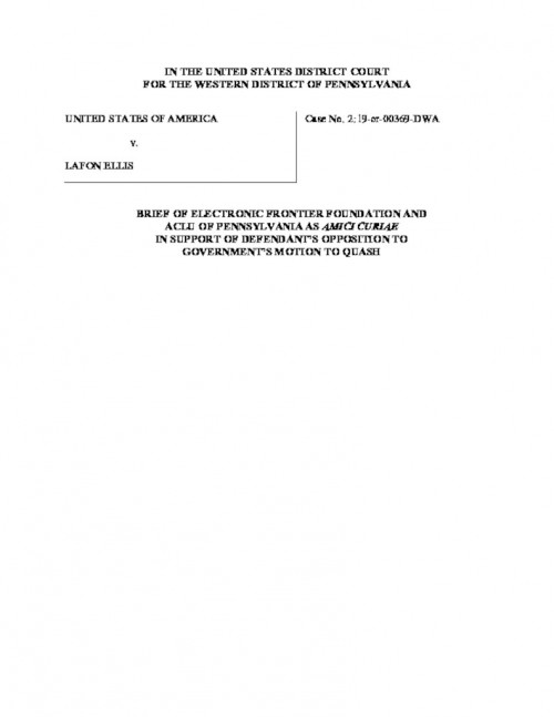Along with the ACLU of Pennsylvania, we filed an amicus brief in the United States District Court for Western Pennsylvania explaining that secret forensic technology is inconsistent with criminal defendants’ constitutional rights and the public’s right to oversee the criminal trial process. We also explain why source code, and other...